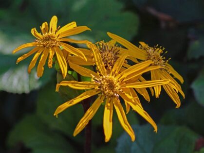 Die Ligularia dentata ‚Othello‘, auch bekannt als Kreuzkraut oder Greiskraut, ist eine wunderschöne Pflanze mit leuchtend gefärbten Blüten und auffällig…
