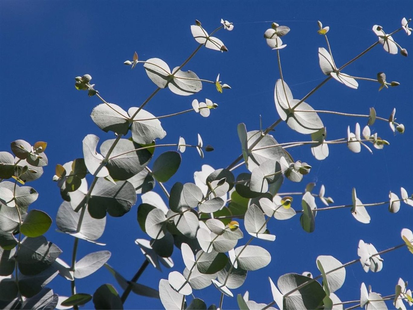 Op latere leeftijd vormt de Eucalyptus gunnii in de zomer kleine witte bloemen. De bladeren zijn blauwgroen en leerachtig, en ze verspreiden een frisse eucalyptusgeur wanneer je ze aanraakt of kneust. Deze geur kan muggen en andere insecten op afstand houden, wat een extra voordeel is voor in de tuin.