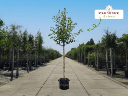 Prunus serrulata „Kanzan“, auch Japanische Nelkenkirsche oder Japanische Blütenkirsche genannt, zeichnet sich durch eine breite, runde Krone mit dunkelgrünen Blättern…
