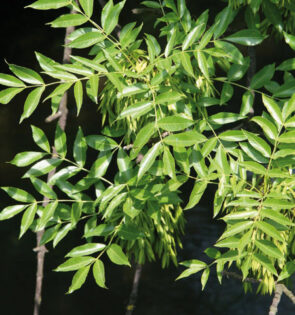 Fraxinus excelsior, auch Gewöhnliche Esche, Gemeine Esche oder Hohe Esche genannt, hat eine breite, runde Krone mit dunkelgrünen gefiederten Blättern.…