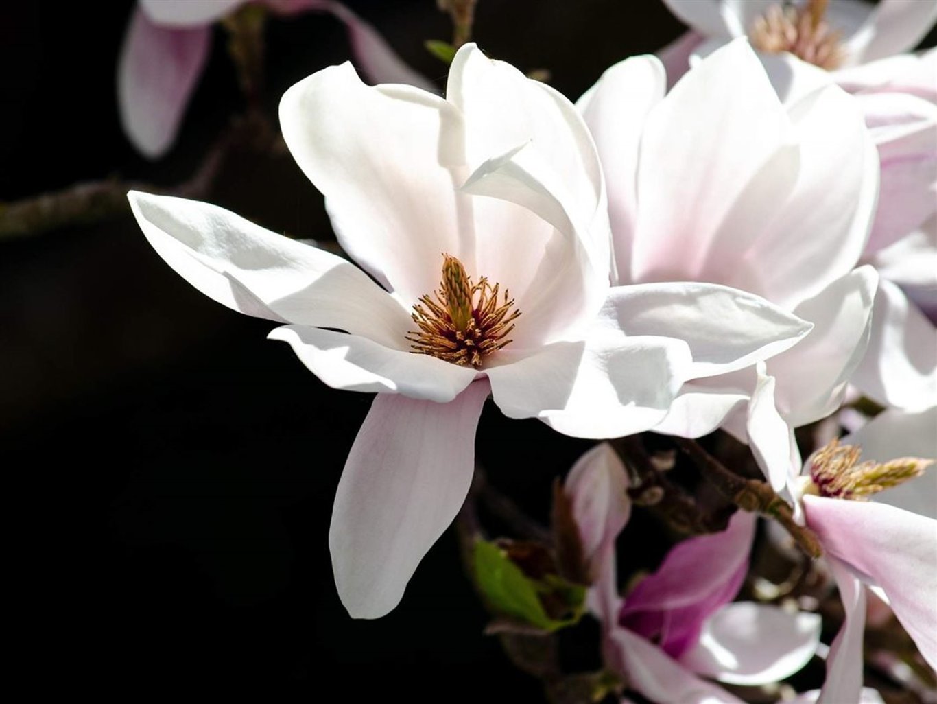 Magnolia loebneri ‘Merrill’ ist ein eleganter Zierbaum, der vor allem für seine reiche und frühe Blüte bekannt ist. Bereits im zeitigen Frühjahr, oft noch bevor das Laub austreibt, steht diese Magnolia voller großer, reinweißer Blüten. Die Blüten sind sternförmig und verströmen einen dezenten, angenehmen Duft. Dadurch ist der Baum ein echter Blickfang im Garten.