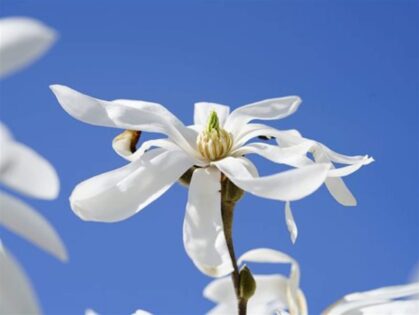 Je nach Sorte blüht die mehrstämmige Magnolie bereits im frühen Frühjahr, manchmal auch später im Jahr. Ihre großen Blüten erscheinen oft noch vor dem Blattaustrieb und setzen beeindruckende Farbakzente. Im Sommer bietet das dichte Laub angenehmen Schatten, und im Herbst verzaubern viele Sorten mit warmen Blattfarben.