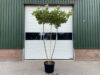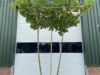 Platanus hispanica – die Platane – in einer mehrstämmigen Dachform. Vom Boden aus wachsen mehrere Stämme bis zum Dach in ungefähr 230 cm Stammhöhe. Es handelt sich um einen schnellwüchsigen Baum mit großen grünen Blättern. Die Rinde wird mit der Zeit schuppig und blättert ab, was einen ansprechenden Effekt ergibt.