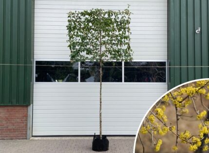 Quercus palustris in Spalierform wird auch Spalier-Sumpfeiche genannt. Der Baum bekommt eine attraktive Herbstfärbung und verträgt gut nasse Böden. Im…