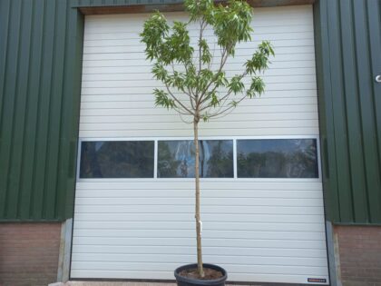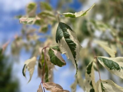 Dieser sommergrüne Strauch hat eine vasenförmige Krone. Der deutsche Name dieses Strauchs lautet Sieben-Söhne-des-Himmels-Strauch. Er blüht im August mit weißen…