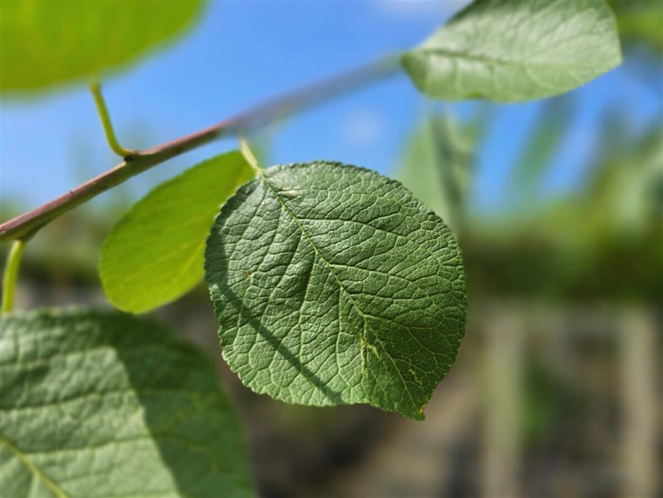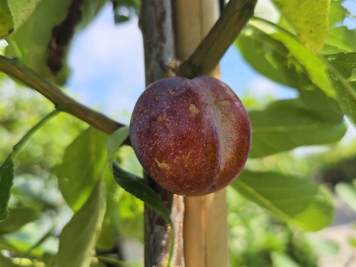 Der Prunus domestica ‘Opal’ Spalierbaum ist ein bekannter Pflaumenbaum mit köstlich süßen Früchten. Diese Pflaumen sind klein, rund und haben eine rotviolette Schale. Das Fruchtfleisch ist saftig, goldgelb und hat einen angenehm süßen Geschmack. Etwa im Juli/August sind die Früchte reif. Im Frühjahr blüht dieser Baum mit wunderschönen weißen Blüten. Es ist ein selbstbestäubender Pflaumenbaum.