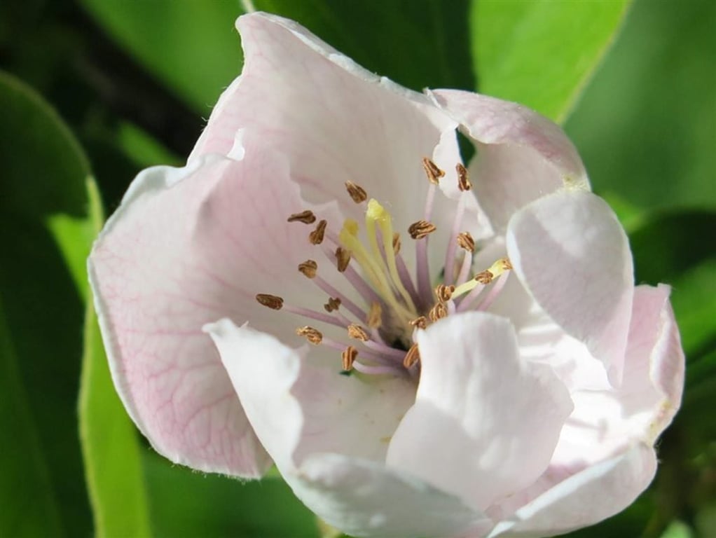 Im Mai schmückt sich die Quitte mit wunderschönen zartrosa bis weißen Blüten, die einen dezenten Duft verströmen. Nach der Blüte entwickeln sich große, gelbe, birnenförmige Früchte. Diese Quitten sind fest und nicht direkt zum rohen Verzehr geeignet, eignen sich jedoch hervorragend zur Herstellung von Marmelade, Gelee, Kompott oder Likör. Die Früchte reifen etwa Ende September bis Oktober.