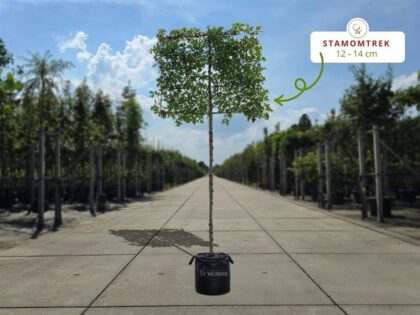 Quercus palustris in Spalierform wird auch Spalier-Sumpfeiche genannt. Der Baum bekommt eine attraktive Herbstfärbung und verträgt gut nasse Böden. Im…