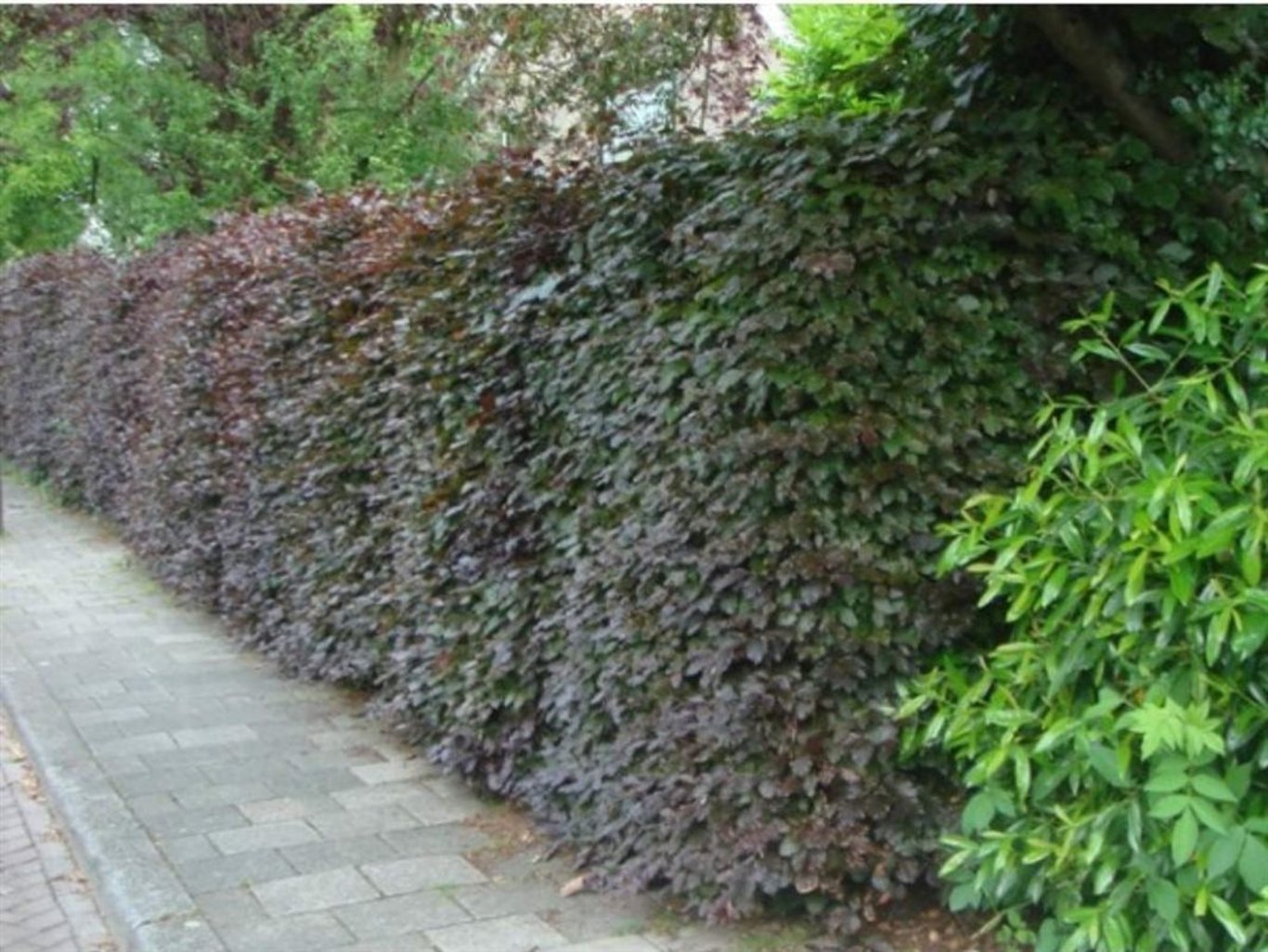Fagus sylvatica atropunicea, umgangssprachlich auch bekannt als Rotbuche, Blutbuche und Veredelte Blutbuche, ist eine Buchenart, die sich für Hecken eignet. Im Winter bleiben die Blätter lang am Baum und färben sich braun. Bevorzugt guten durchlässigen Boden.