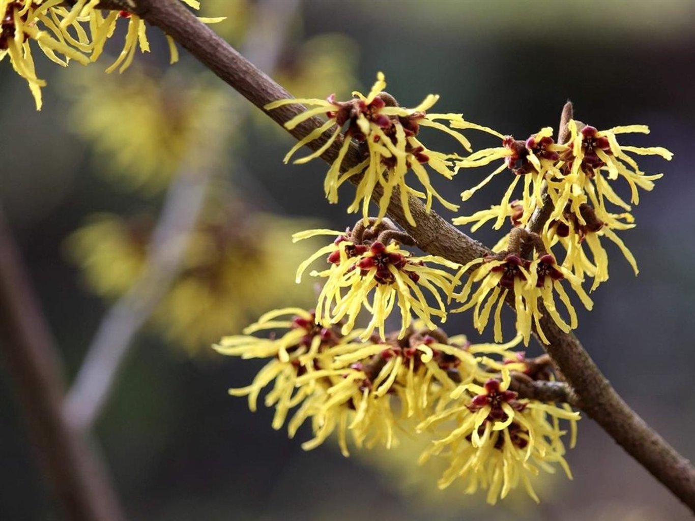 Im Spätwinter bis frühen Frühjahr, oft bereits im Januar/Februar, erscheinen die auffälligen, goldgelben, bandförmigen Blütenblätter. Die Blüten verströmen einen leichten, angenehmen Duft und bringen Farbe in den Garten, wenn die meisten anderen Pflanzen noch kahl sind. Das Laub ist im Sommer frischgrün und färbt sich im Herbst in warme Töne von Orange, Rot und Gelb.