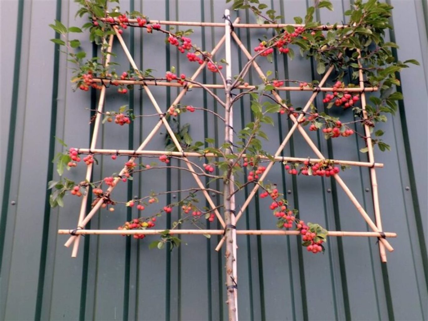 Spalierbäume können eine tolle Bereicherung für den Garten darstellen. Einige nebeneinander gepflanzte Spalierbäume an der Vorderseite des Hauses können etwa die Privatsphäre verbessern. Außerdem können diese Bäume in heißen Sommern den dringend benötigten Schatten in der direkten Umgebung des Hauses bieten. Der Zierapfel in Spalierform macht dabei noch mehr Freude, weil er Früchte und Blüten trägt. Die Pflanzung eines Zierapfels in Spalierform verleiht dem Garten von Frühlingsbeginn bis in den Spätherbst einen großen Mehrwert.