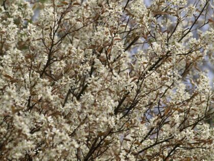 Die Felsenbirne Blütezeit ist im April-Mai, oft reichhaltig und mit vielen weißen Blüten.