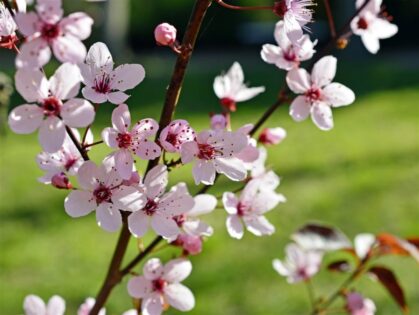 Prunus serrulata „Kanzan“, auch Japanische Nelkenkirsche oder Japanische Blütenkirsche genannt, zeichnet sich durch eine breite, runde Krone mit dunkelgrünen Blättern…