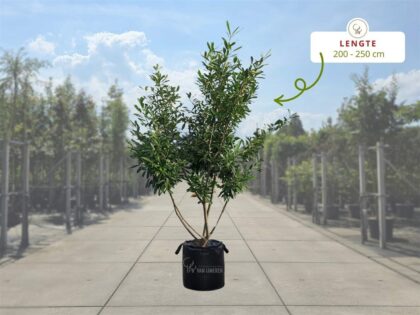 Prunus laurel Caucasica oder Kirschlorbeer ist ein winterharter, immergrüner, mehrstämmiger Strauch. Die dunkelgrünen Blätter des Lorbeerbaumes bilden im Frühjahr weiße…